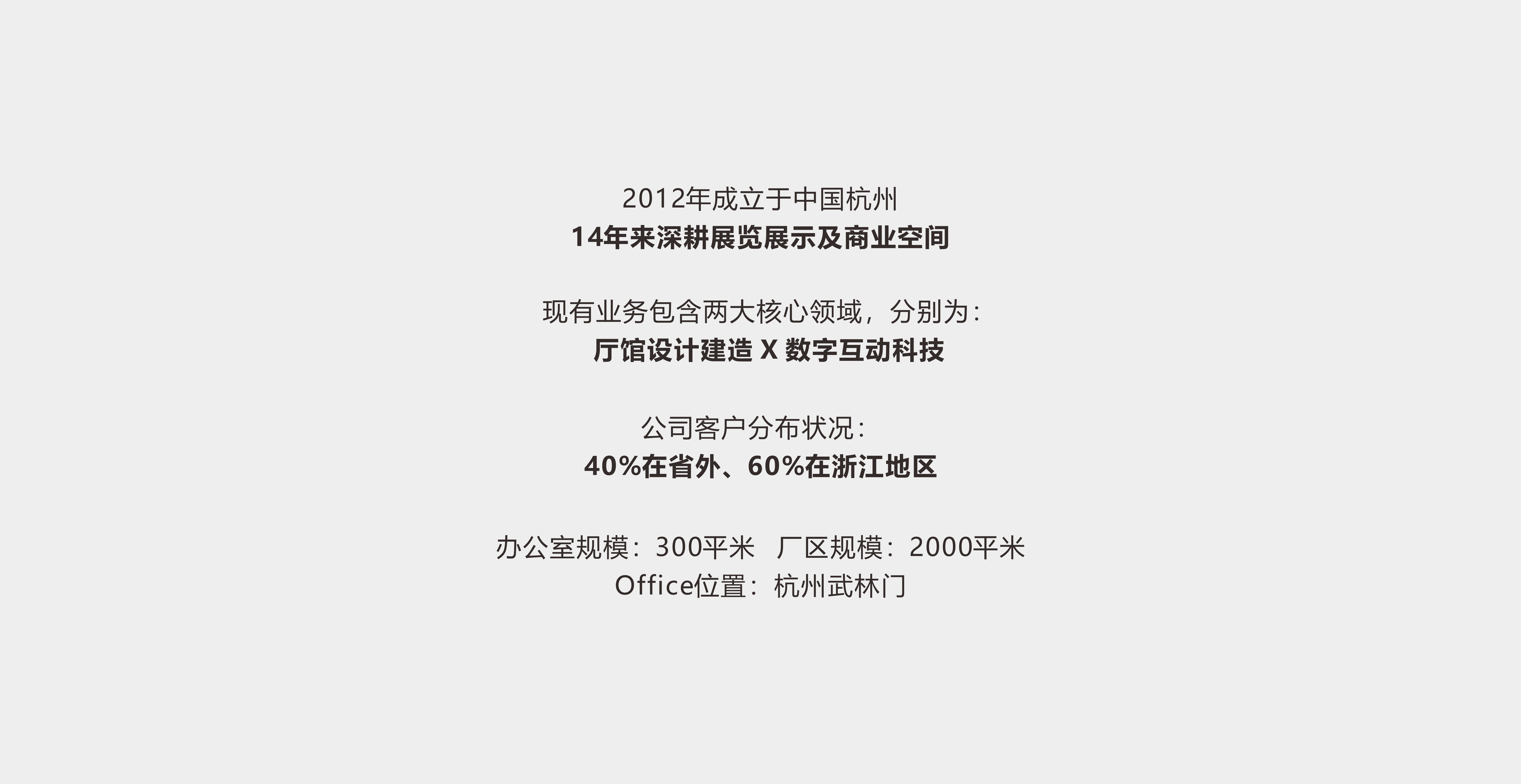 公司现雇用包括策划师、设计研究师、展示设计师、景观设计师,展示策划师和建筑施工管理专家等。参与大量工程设计项目包括城市规划馆和城市博物馆、智慧城市馆、智能体验馆及大型企业展厅。主要服务的项目客户遍布全国各地,各个行业。