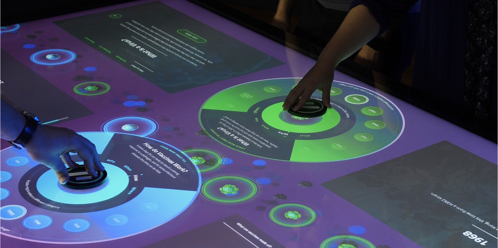 博物馆还可以使用触摸屏和软件创造游客参与体验,当将感兴趣的工艺品模型放置到桌子上时,可以启动视频和其他内容。