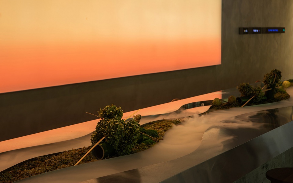 曲水流觞吧台除了“欢庆”,“祈福”两层古老寓意外,也是设计团队对外沟通的装置。