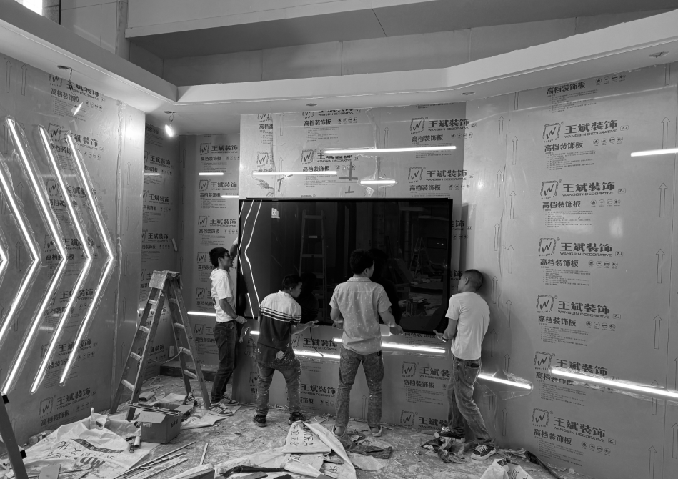 美工进场设计师全程对接,水平仪测量精确到几毫,不放过任何一个细节。