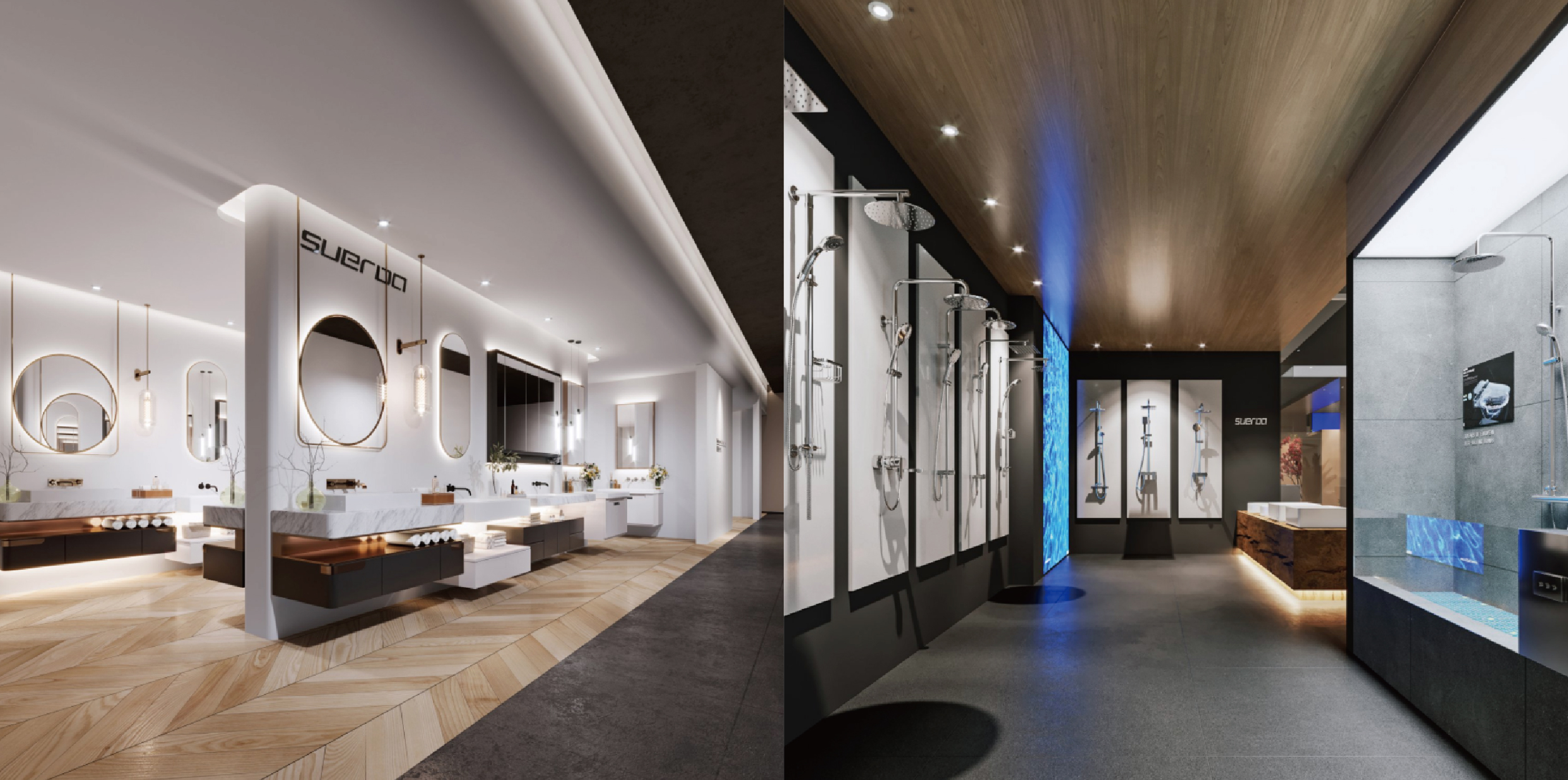 这是展品的样板间,主要是淋浴产品和梳妆产品。