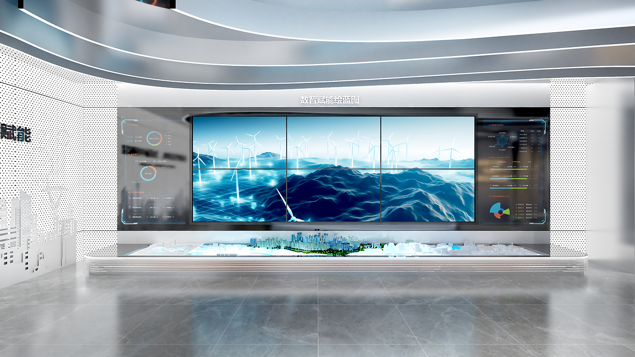 展厅末端,弧形屏幕与数智沙盘构建起 “未来能源图景”。风电、水电等多能互补的虚拟场景在屏上流动,城市模型与能源网络实时联动,传递 “绿色、智慧、协同” 的能源发展理念。空间中流动的科技光带,如同能源的未来脉络,引领参观者畅想水电与新能源融合的无限可能,让黄龙滩展厅不仅是历史的容器,更是能源未来的瞭望台,持续书写水电能源的崭新叙事 。