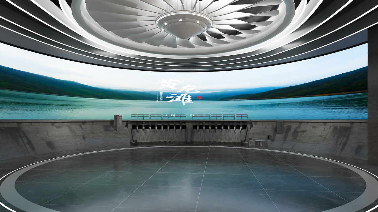 踏入展厅,巨型弧幕与涡轮造型穹顶瞬间构建起 “山水与工业” 的对话场域。屏幕上,黄龙滩的湖光山色与水电站的钢铁筋骨交融,水的灵动与能源设施的厚重形成张力,如同翻开一部能源史诗的封面,无声诉说着 “自然馈赠与人类智慧共生” 的序章,让参观者在第一时间,感知水电能源的独特基因。