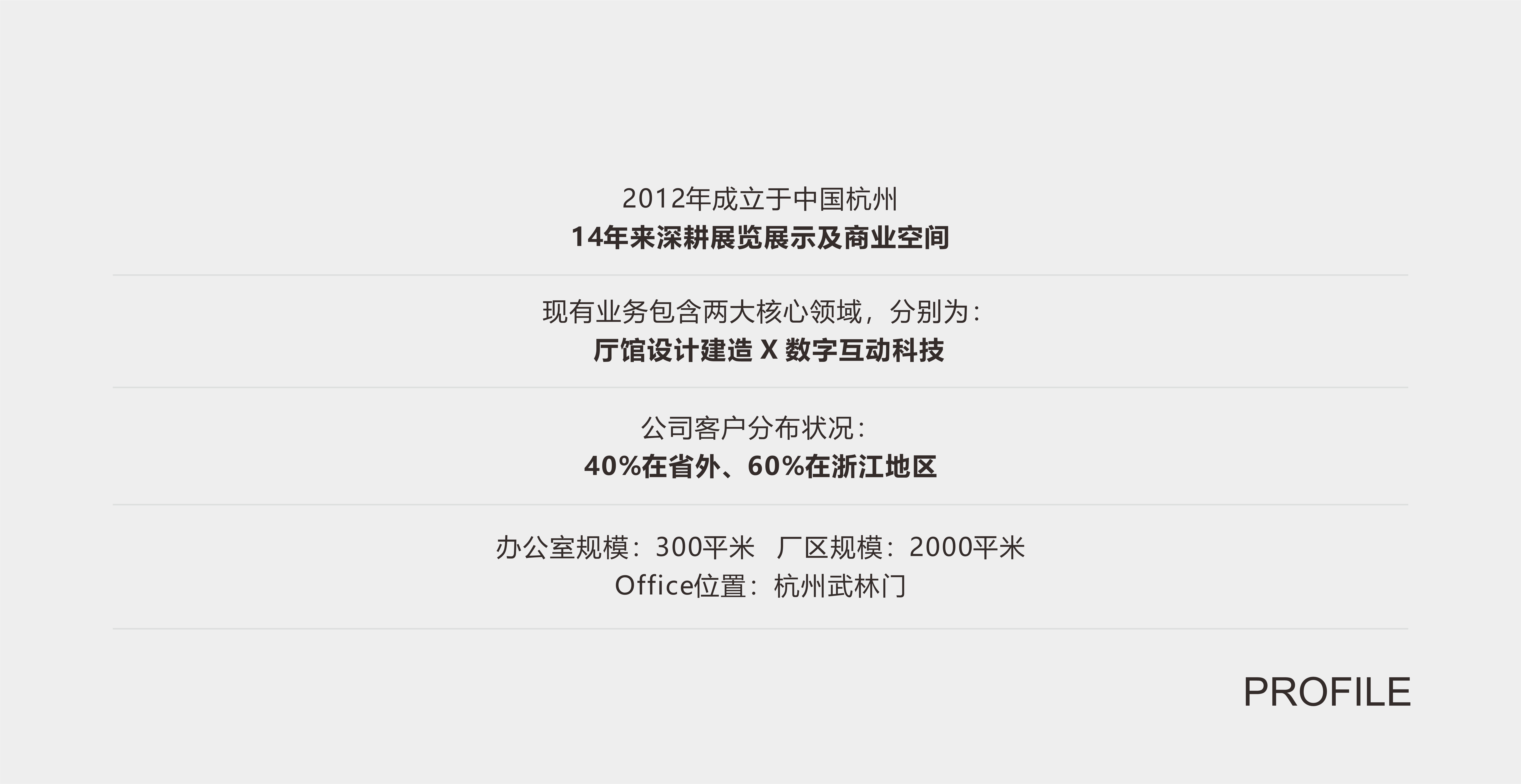 公司现雇用包括策划师、设计研究师、展示设计师、景观设计师,展示策划师和建筑施工管理专家等。参与大量工程设计项目包括城市规划馆和城市博物馆、智慧城市馆、智能体验馆及大型企业展厅。主要服务的项目客户遍布全国各地,各个行业。